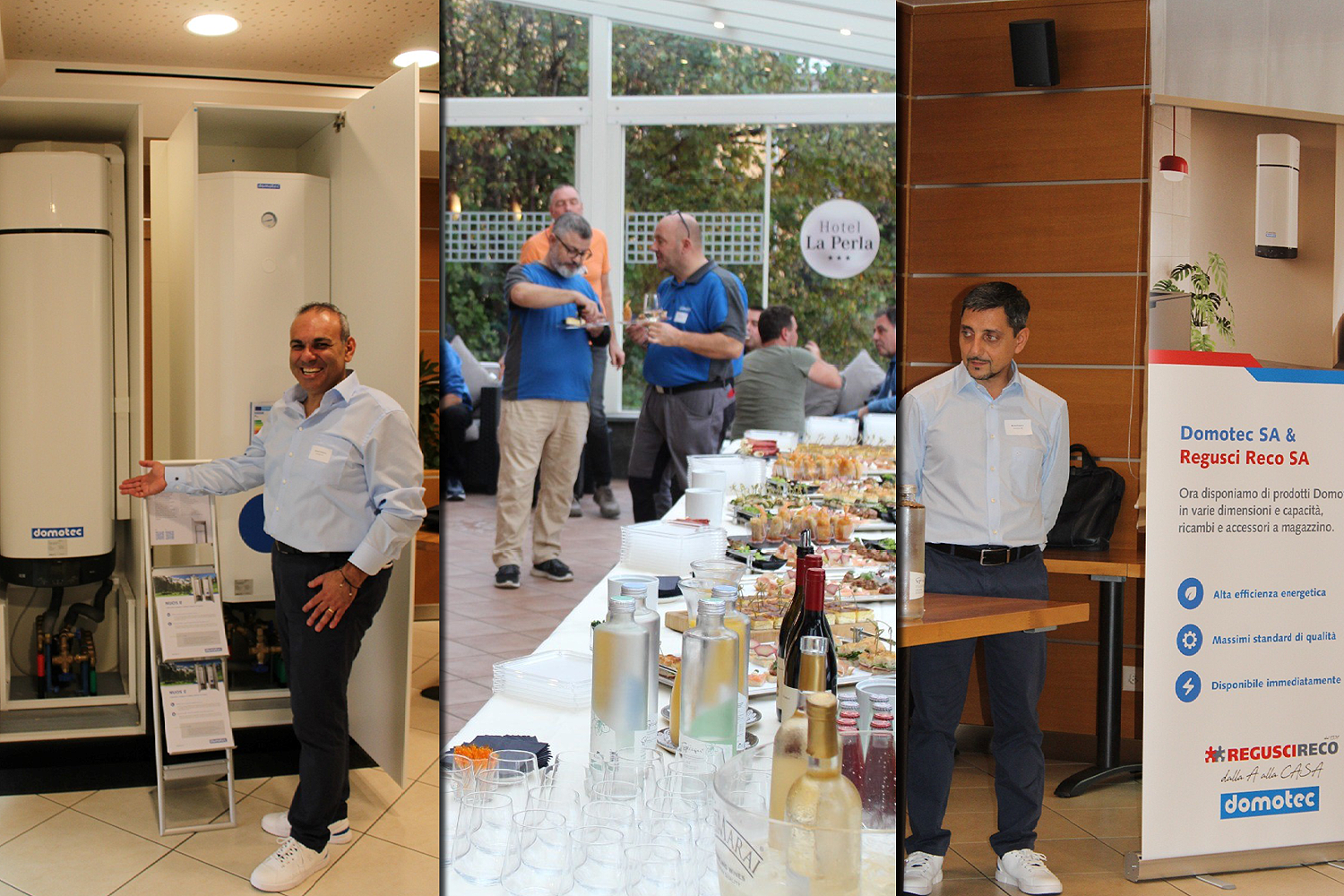 Le 23 octobre 2024, nous avons organisé un événement de réseautage et d'information à l'hôtel La Perla à S. Antonino. L'événement a réuni environ 45 invités - dont des installateurs sanitaires, des planificateurs et des experts du secteur - pour découvrir les derniers développements et partenariats de notre entreprise au Tessin. L'événement nous a donné l'occasion non seulement d'informer sur les prochaines modifications de l'ordonnance sur l'efficacité énergétique (OEne), mais aussi de présenter notre partenariat stratégique avec la société tessinoise Regusci Reco SA.